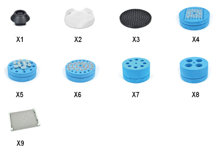 | X8 | 泡沫模塊,與標配塑料托盤連用,用于放置50ml試管,孔徑Φ26.2mm×4個 |
