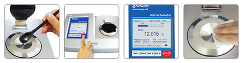 滴2-3滴樣品在棱鏡樣品槽內(nèi)→按START鍵進行開始測量→閃爍3秒后測量數(shù)值表示→測量完畢后將棱鏡樣品槽進行擦拭工作。