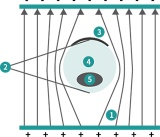 1 細(xì)胞膜近似絕緣體,細(xì)胞附近電轉(zhuǎn)液中電流扭曲。